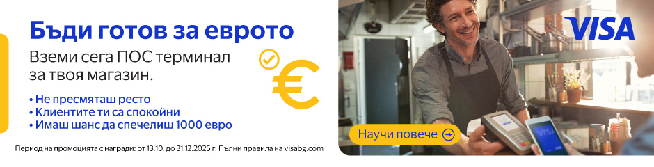 Участвайте за 15 парични награди х 1000 евро, като инсталирате ПОС терминал до 31.12.2025 г. и приемете поне 3 трансакции.